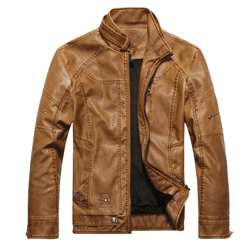 سترة رجالية من جلد البولي يوريثان-خريف شتاء جديد بياقة من الفرو سترة كلاسيكية لسائقي الدراجات النارية سترة شتوية جيب معطف ريترو للرجال
