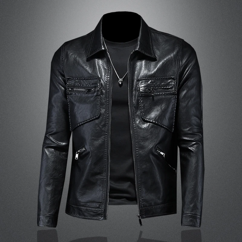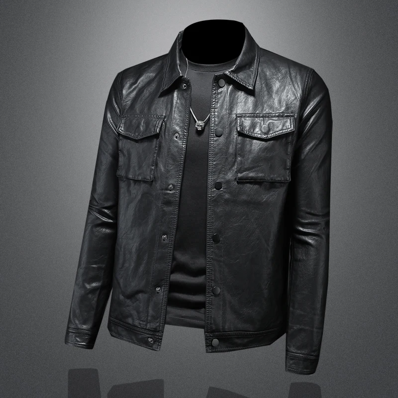 معطف جلدي للرجال بقصة ضيقة للدراجات النارية ، جاكيت أنيق ، وسيم بطية صدر رفيعة ، موضة جديدة ، الخريف والشتاء ،