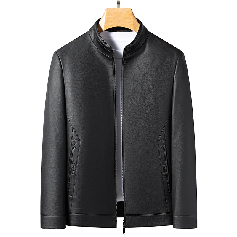 سترة جلدية جديدة لعام 2025 بطبقة علوية 100% ملابس من جلد البقر للرجال بياقة واقفة ملابس للدراجات النارية للخريف والشتاء مقاس كبير