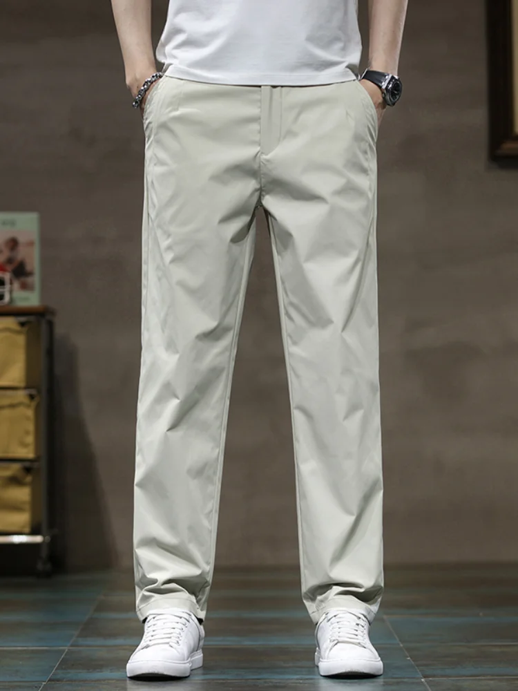 الصيف رقيقة الحرير الجليد عارضة السراويل للرجال بلون فضفاض مستقيم المألوف ضوء الأعمال عارضة السراويل الطويلة الذكور