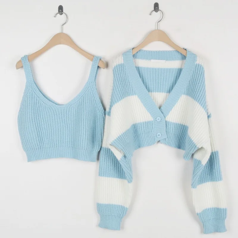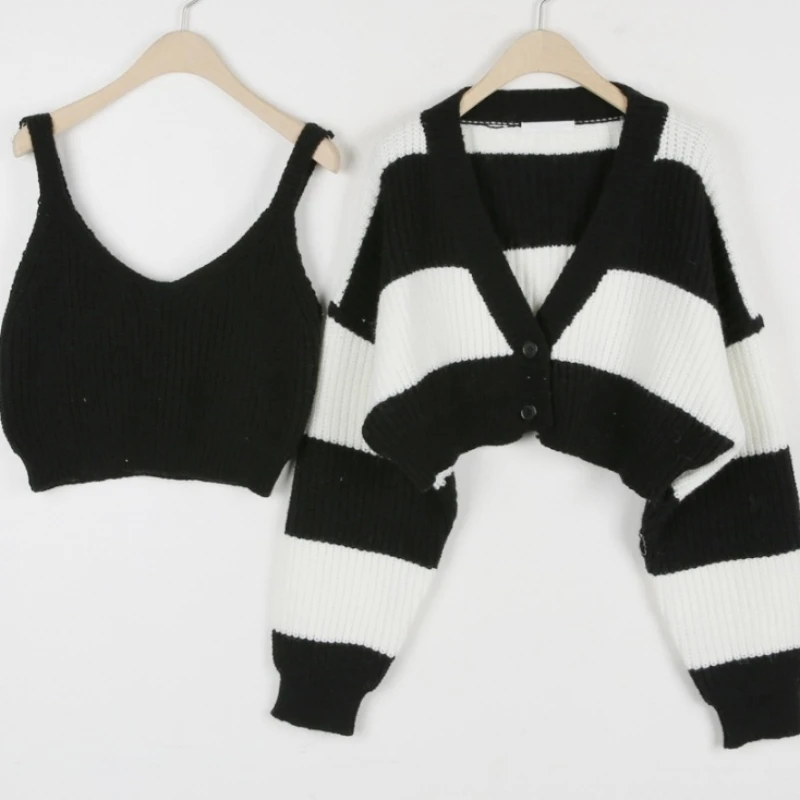بلوزة نسائية محبوكة بأكمام طويلة ، سويتر ، شريطي ، كارديجان ، قصير ، فضفاض ، كاجوال ، خريف ، شتاء ، موضة ، 2 * * *