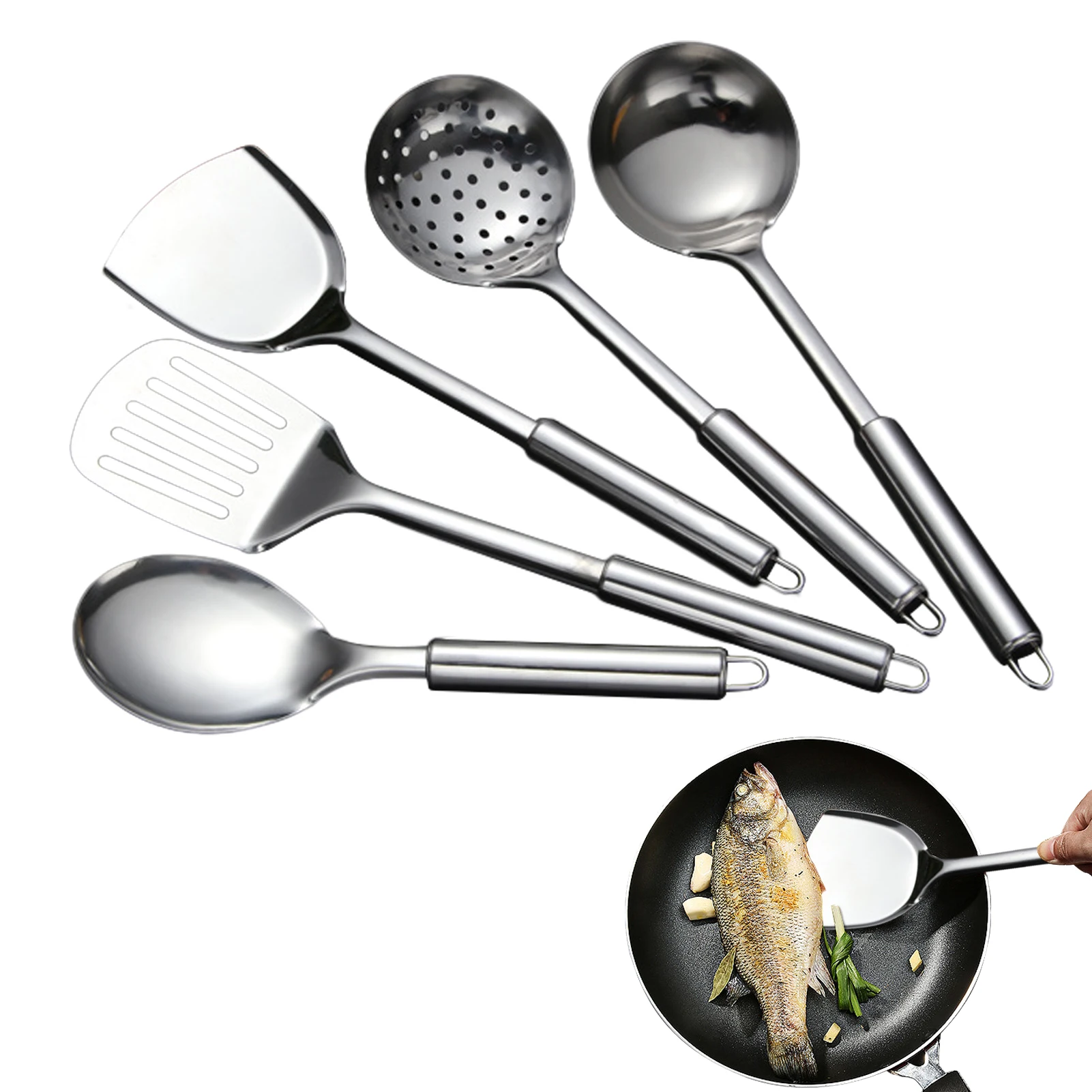 5 قطعة ملعقة فضية عملية ملعقة من الفولاذ المقاوم للصدأ مجموعة أدوات المطبخ أدوات الطبخ