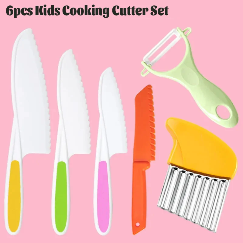 6 قطعة أدوات مطبخ مونتيسوري للأطفال الصغار مجموعة قاطعة الطبخ البلاستيكية سكاكين الفاكهة الأطفال لتقوم بها بنفسك مقشرة اكسسوارات المطبخ