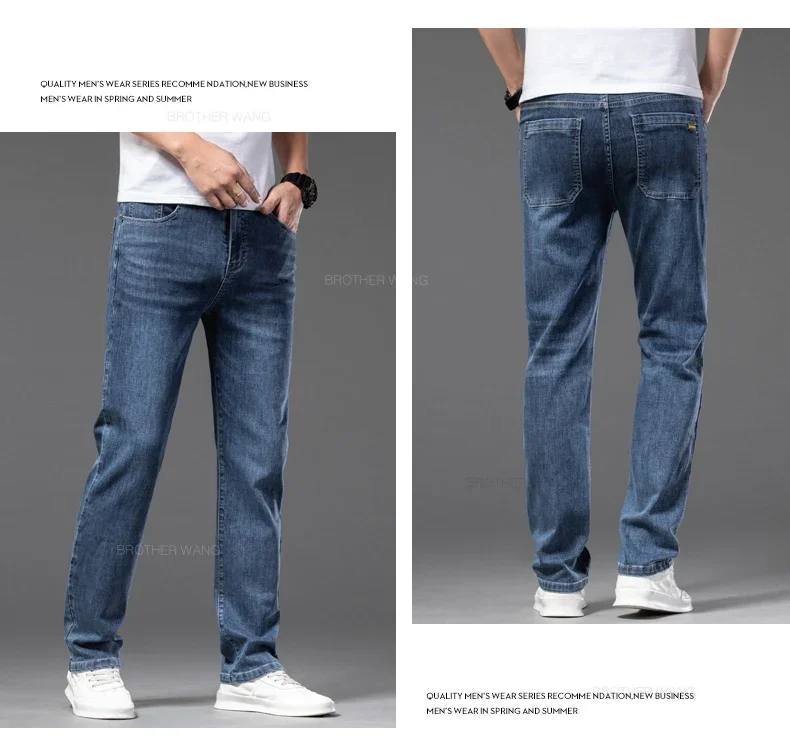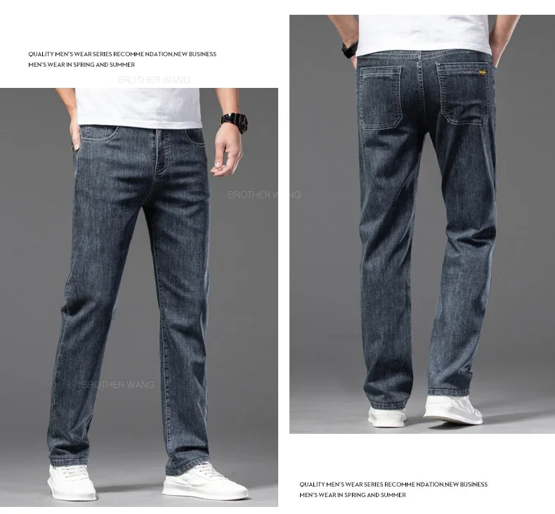 Be the first to review “الصيف رقيقة الرجال جينز غير رسمي رمادي أزرق النمط الكلاسيكي مطاطا مستقيم الساق فضفاضة عالية الخصر سراويل جينز الرجال ماركة الملابس” Cancel reply