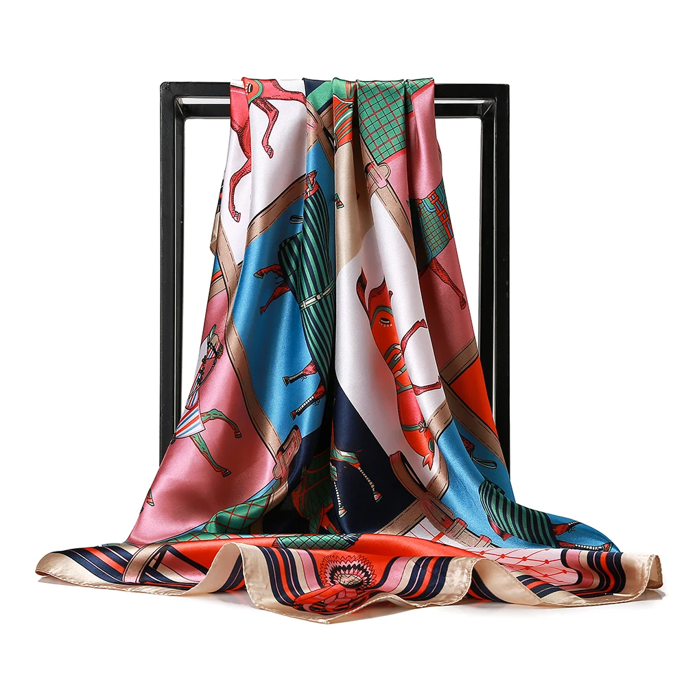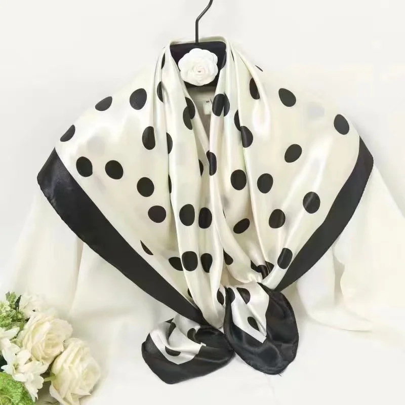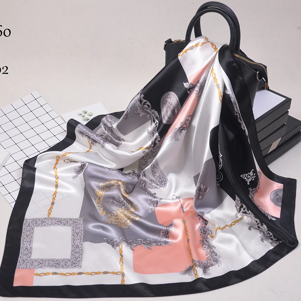 الساتان ساحة وشاح المرأة مسلم الحجاب أنيقة 2023 طباعة الحرير منديل شال يلتف عقال مقبض إكسسوارات الشعر باندانا