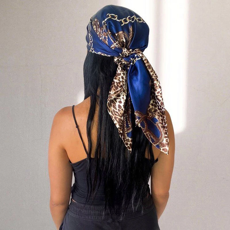جديد فاخر ماركة ليوبارد طباعة عقال وشاح المرأة موضة الحرير الساتان رباط شعر حقيبة المعصم باندانا منديل شال يلتف