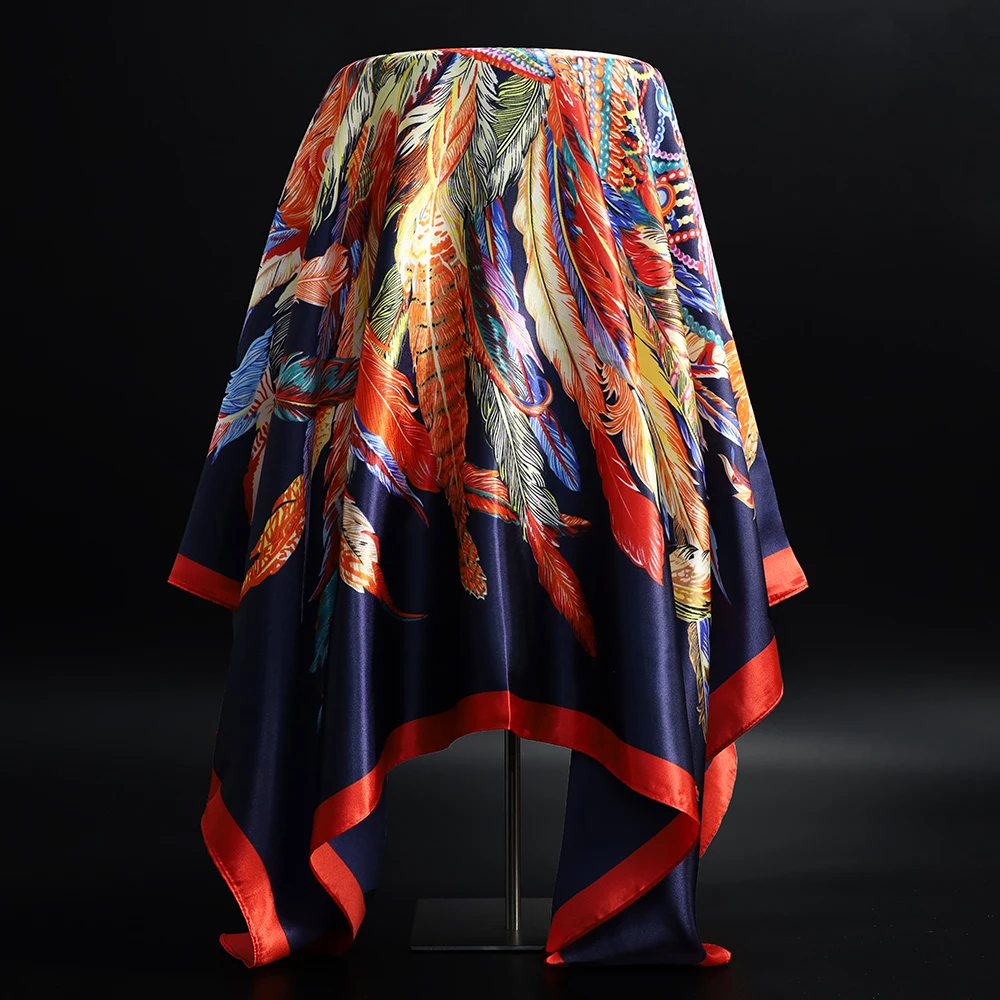 جديد وشاح حريري والتفاف لمصمم العلامة التجارية الفاخرة منديل الرقبة رئيس/الأوشحة الشعر باندانا منديل 90X90CM الحجاب