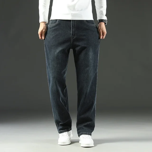 رجل جينز أسود كبير الحجم الدنيم النسيج السراويل للأشخاص الدهون 45-150 كجم Hombre واسعة الساق الجينز Pantalon أوم