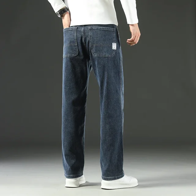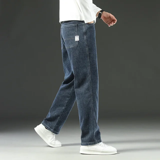 جينز رجالي جديد لخريف وشتاء 2024 ، فضفاض ، مريح ، مستقيم ، غير رسمي للعمل ، متعدد الاستخدامات بنطال عمل واسع الساق