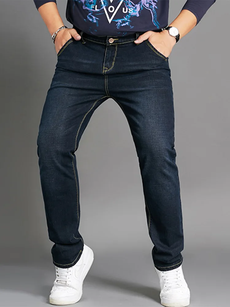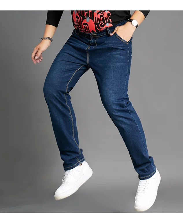 جينز رجالي مقاس كبير 10XL سروال دينم مستقيم الساق كبير الحجم قابل للتمدد بنطلون فضفاض ملابس غير رسمية مريحة تناسب 160 كجم