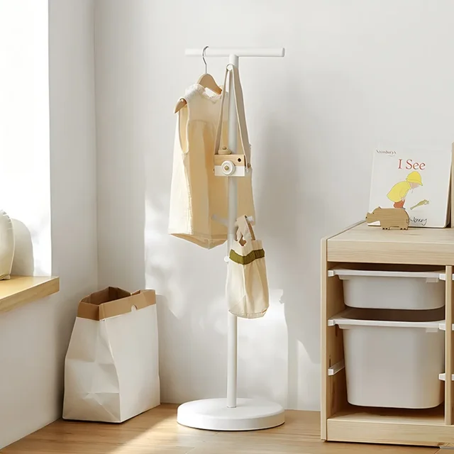 رف تخزين لحقيبة الكتب بقضيب واحد للمكتب جانب معلق رف أرضي قائم على الأرض رف ملابس الأطفال منظم رف معطف لغرفة المعيشة