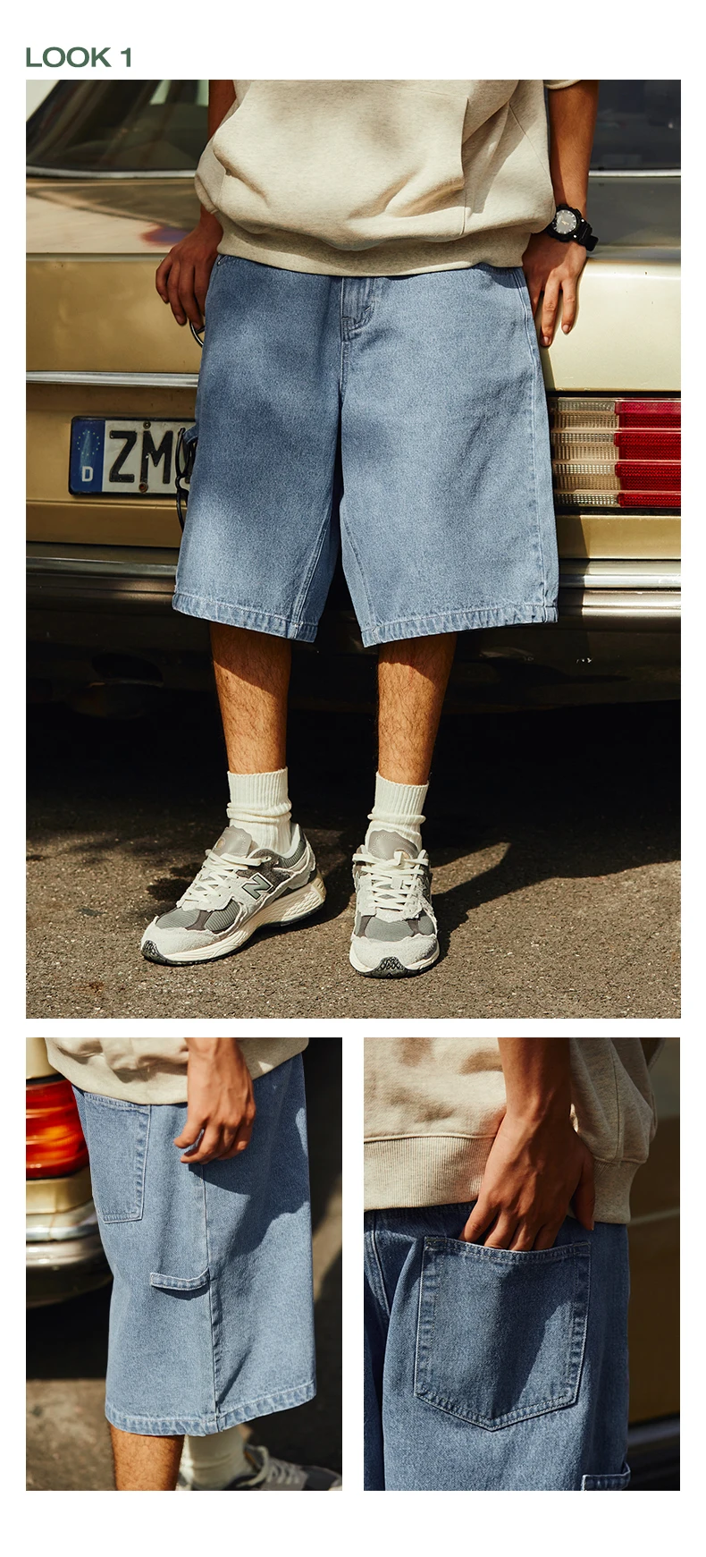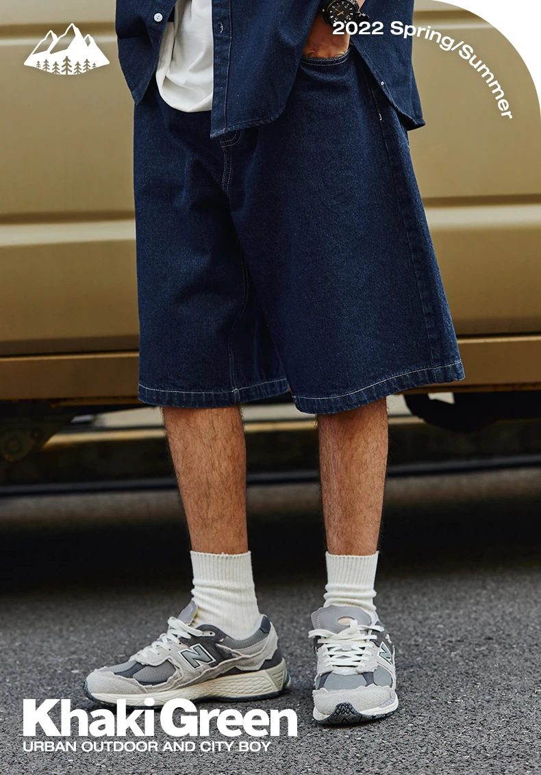 شورت جينز كلاسيكي من التضخم للرجال ، فضفاض ، مستقيم ، مغسول