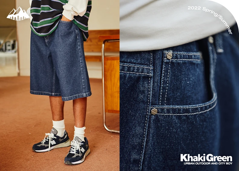 شارع العليا التطريز عادية فوق الركبة الصيف شورت جينز الرجال واسعة الساق فضفاض Y2K الدنيم قصيرة المتضخم خمس نقاط السراويل