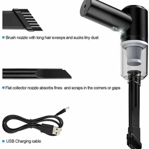 “اجعل سيارتك نظيفة دائمًا مع مكنسة السيارة الكهربائية اللاسلكية 120W – رفيقك المثالي للحفاظ على نظافة سيارتك.”