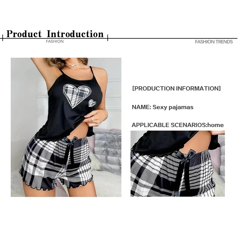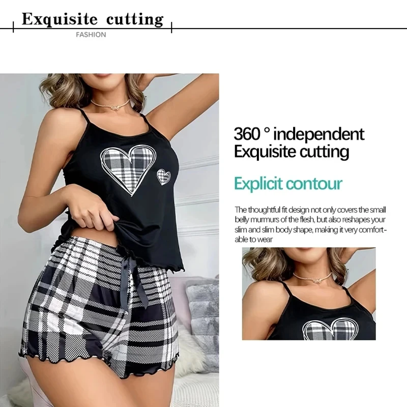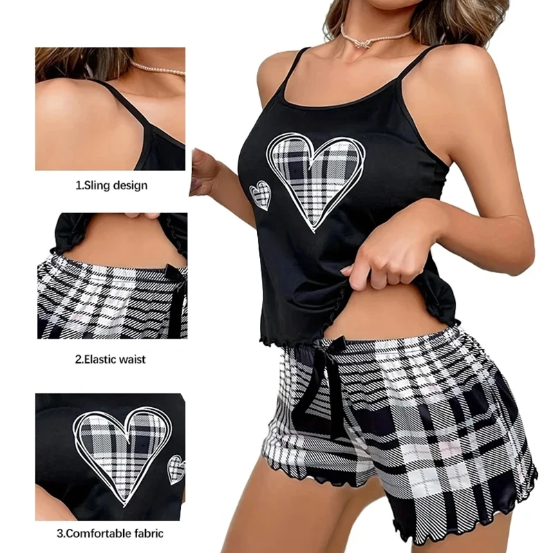 ملابس نوم نسائية حمالات علوية منقوشة سراويل موضة ملابس نوم ملابس منزلية طقم مكون من قطعتين بيجامات للسيدات ملابس تنحيف مطبوعة بالحب