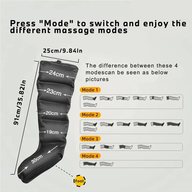 يوجد في قلب مدلك القدم هذا تقنية ضغط الهواء المتقدمة.يقوم الجهاز بنفخ الوسائد الهوائية وتفريغها من الهواء بشكل استراتيجي حول ساق القدمين والقدمين، مما يخلق تدليكًا ضغطًا إيقاعيًا.يساعد هذا الضغط الديناميكي على تحسين الدورة الدموية وتقليل توتر العضلات.