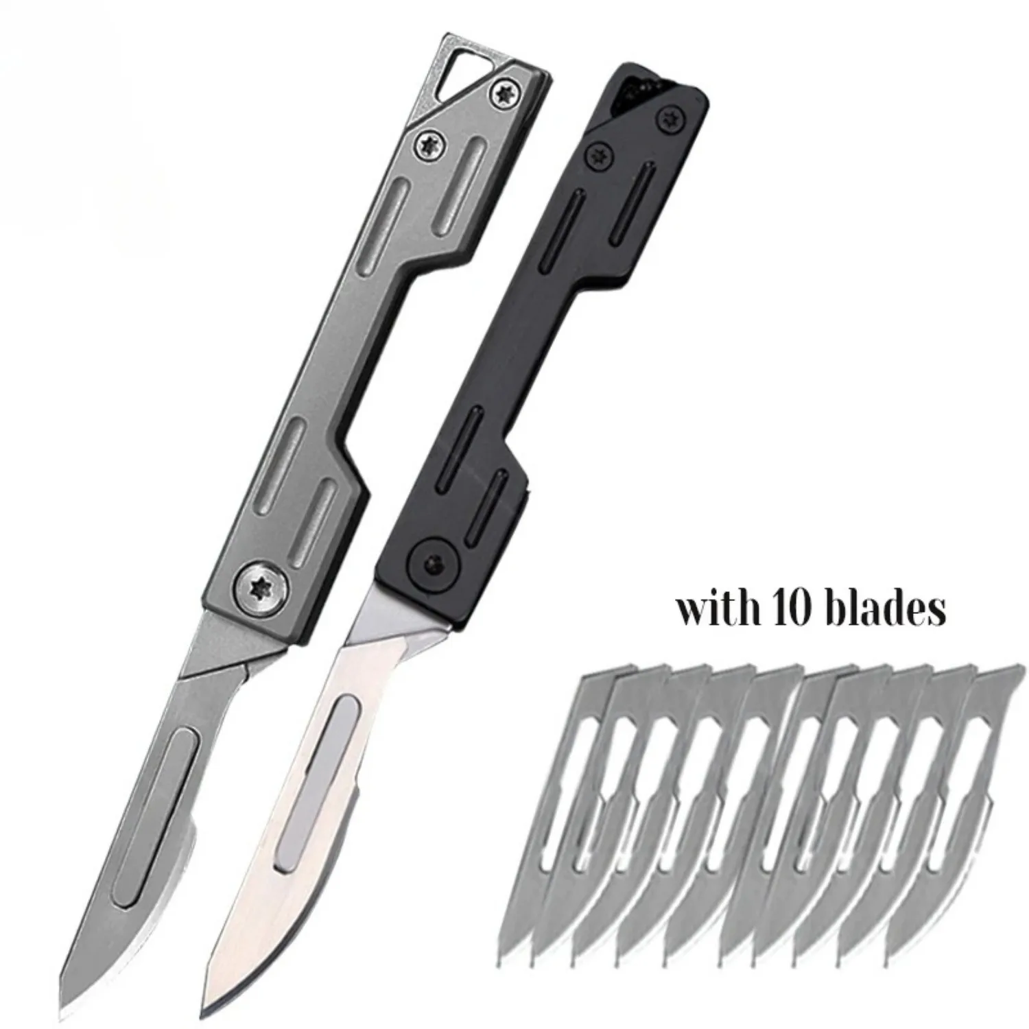 آلات الفولاذ المقاوم للصدأ سكين للفرد صندوق طبي فتاحة سكين جيب مع 10 شفرات قابلة للاستبدال هواية سكين متعدد الوظائف