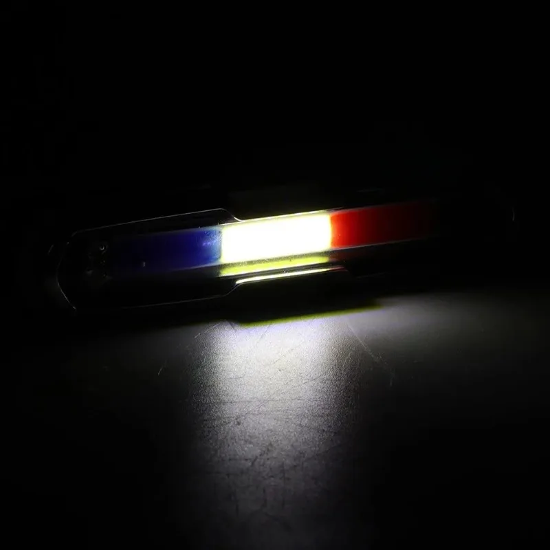 أضواء ثلاثية الألوان باللون الأحمر والأزرق والأبيض:(الضوء الأحمر والضوء الأزرق والضوء الأبيض) [سبعة أوضاع]، وقت الاستخدام يصل إلى 5 ساعات، واضغط مع الاستمرار لمدة 5 ثوانٍ للفتح.