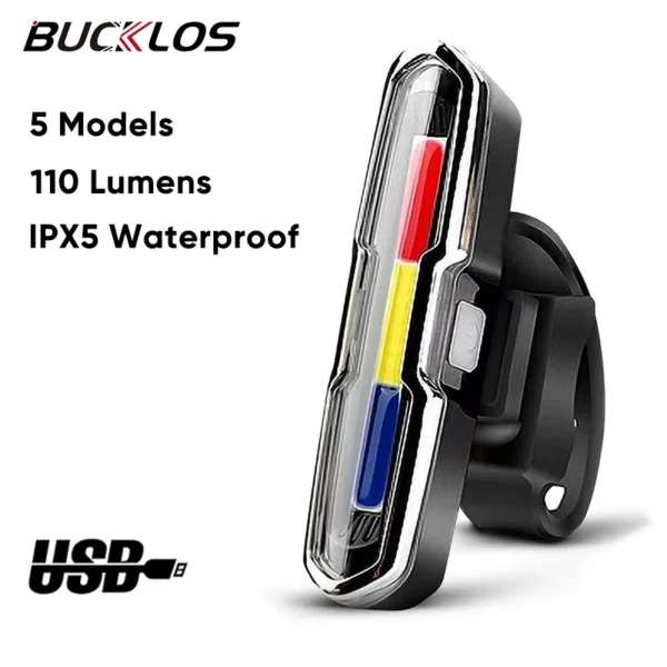 BUCKLOS دراجة الإضاءة دراجة ضوء الأمامي والخلفي مصباح LED المصباح الخلفي إعادة شحن الدراجات ضوء أخضر أحمر أبيض ضوء