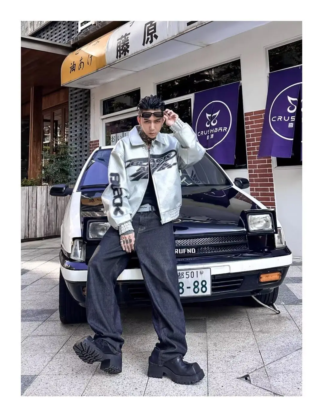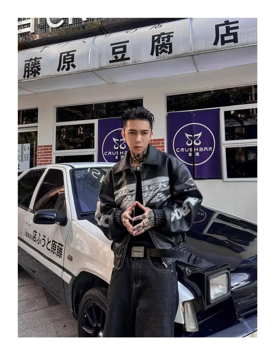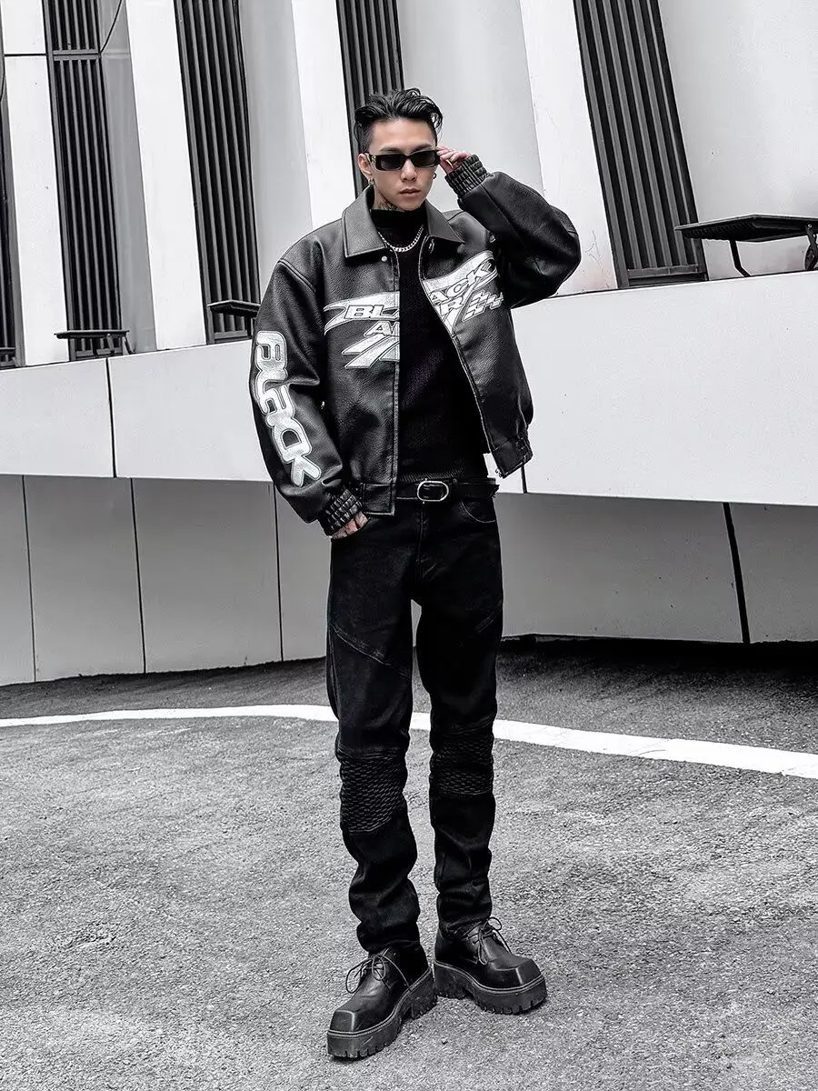 الخريف الشتاء فاسق معطف التطريز دراجة نارية دعوى بولي Leather سترة جلدية الرجال شارع العليا الرجعية المتخصصة صورة ظلية سترة الوزن الثقيل