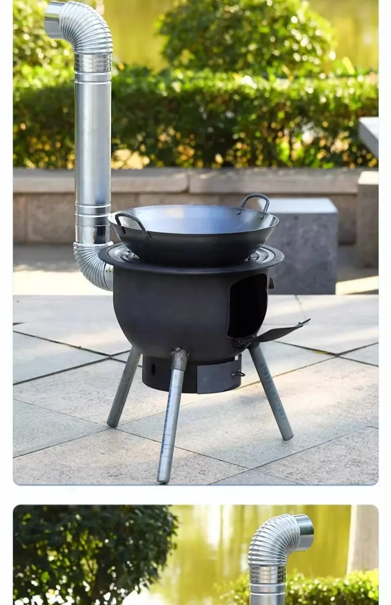 الوظيفة: تم تصميم موقد الخشب المنزلي الذي يحرق الخشب خصيصًا للطهي في الهواء الطلق، مما يجمع بين الراحة والتطبيق العملي.إنها تعتمد التصميم الكلاسيكي للقاعدة المستديرة السوداء، وهي جميلة ومتينة.الجزء السفلي من الموقد مجهز بثلاثة دعامات ثابتة للقدم لضمان التوازن والثبات في مختلف البيئات الخارجية.