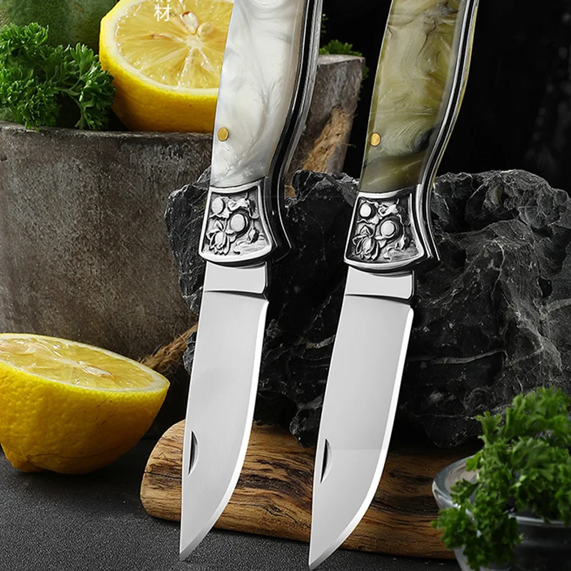 الفولاذ المقاوم للصدأ للطي الفاكهة سكين التقشير الراتنج مقبض سكين نزع العظم المحمولة سكين جيب شواء الساطور المطبخ تقطيع سكين
