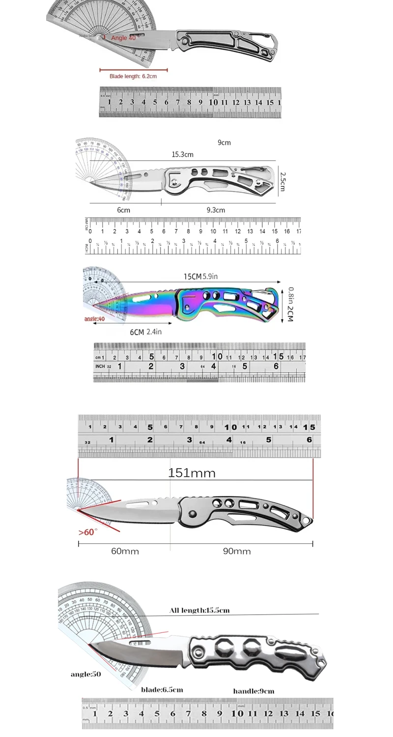 سكين فواكه قابل للطي سكين جيب من الفولاذ المقاوم للصدأ مع مقبض غير قابل للانزلاق سكّين متعدّد الاستخدامات سلسلة مفاتيح سكين محمول ملحقات المطبخ