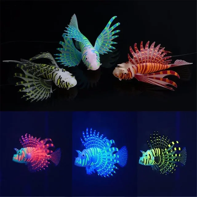حوض السمك الاصطناعي مضيئة خزان الأسماك الأسد المشهد سيليكون الأسماك وهمية العائمة توهج في الظلام زخرفة ديكور المنزل