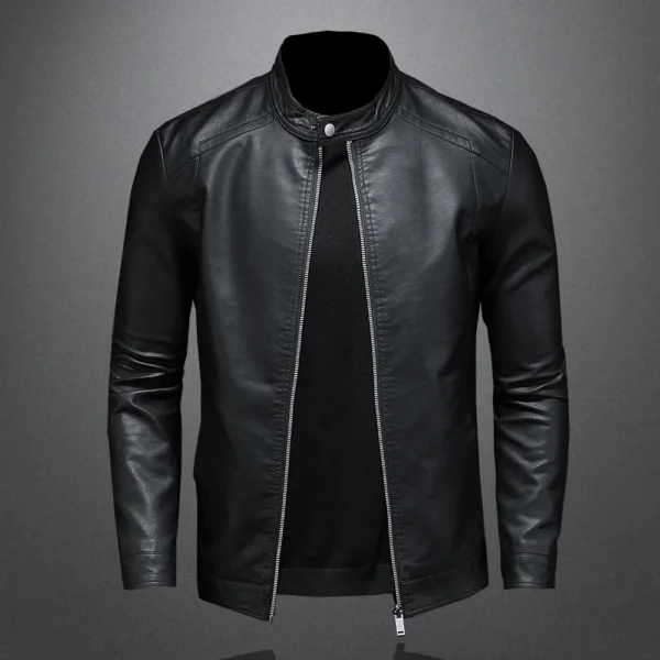 ربيع الخريف سترة جلدية الرجال الوقوف طوق سليم بولي Leather سترة جلدية موضة دراجة نارية معطف غير رسمي رجالي موتو السائق معطف جلد