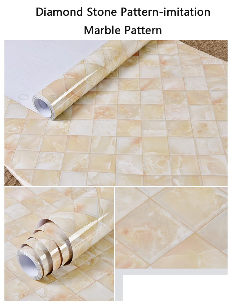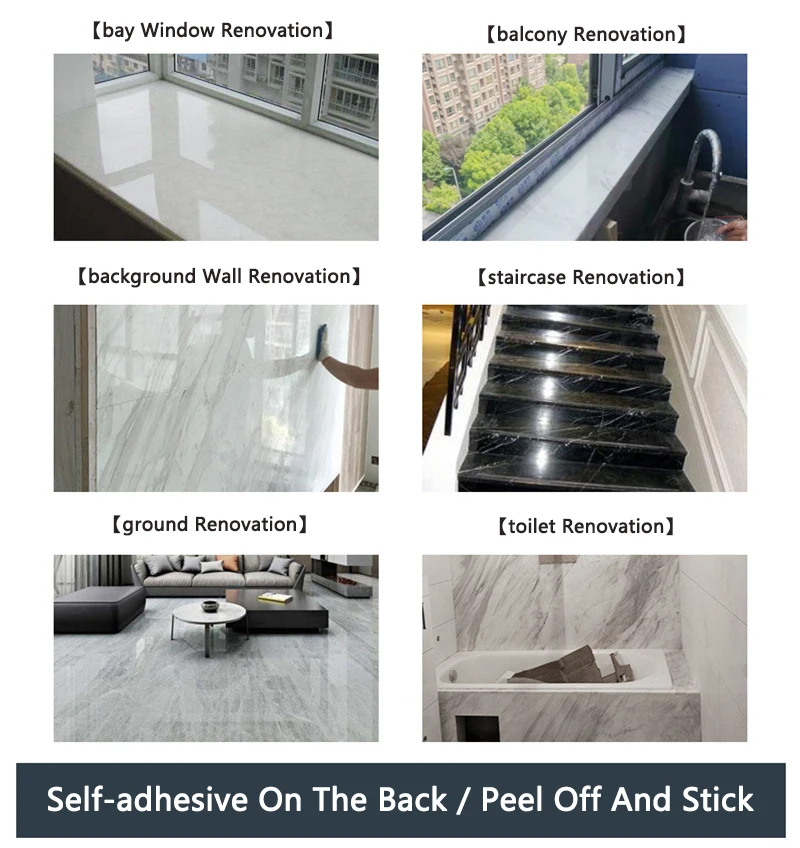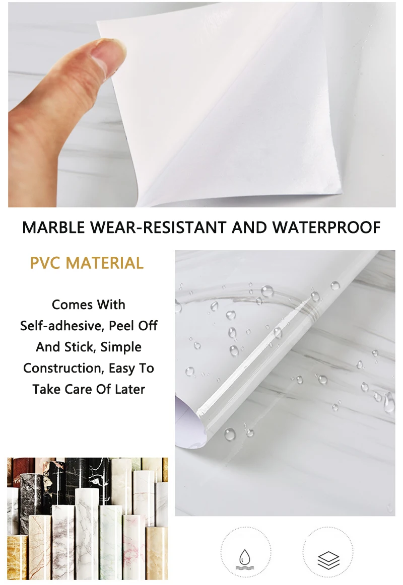 ورق جدران ذاتي اللصق من الفينيل الرخامي للحمام والمطبخ وخزانة كونترتوب ورق اتصال PVC ملصقات حائط مقاومة للماء
