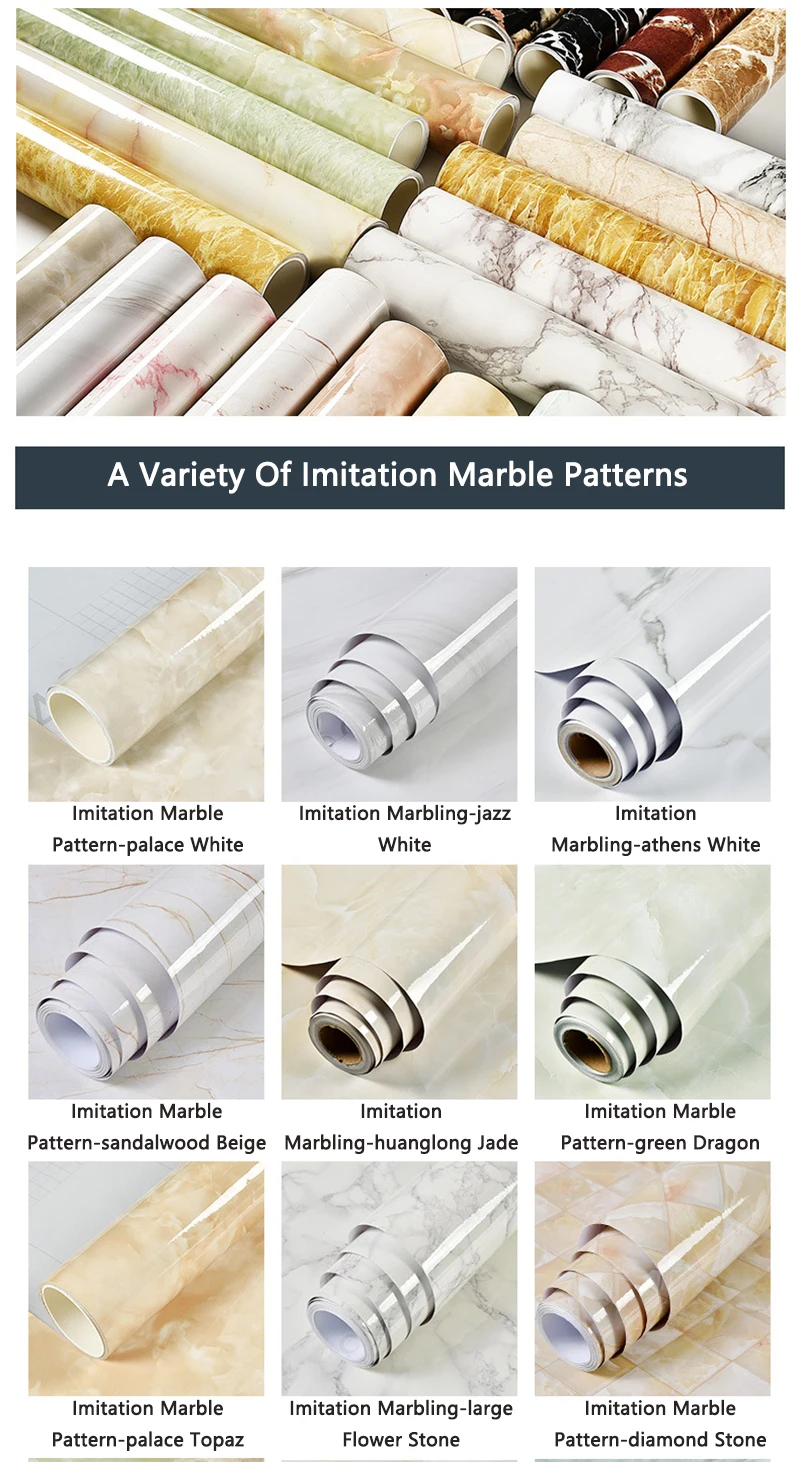 رخام فينيل فيلم ورق حائط ذاتي اللصق للحمام المطبخ دولاب كونترتوب ورق اتصال ملصقات الحائط البلاستيكية المقاومة للماء