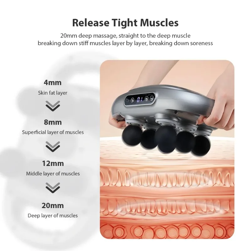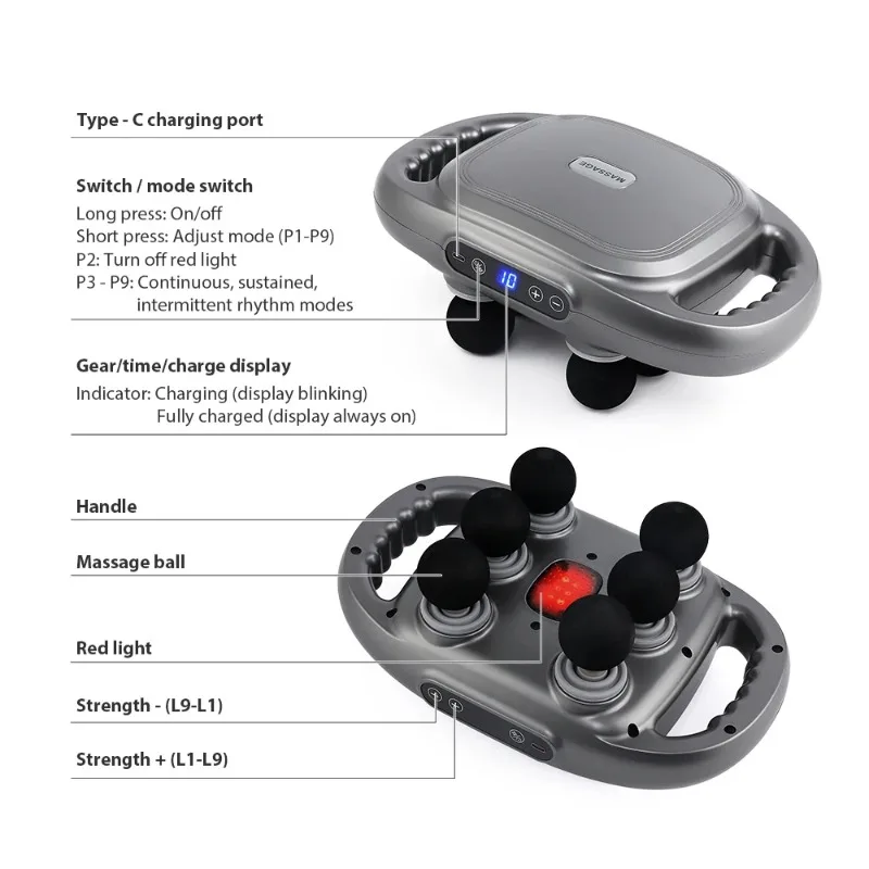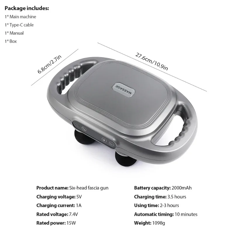 ستة رؤوس فآسيا بندقية عالية التردد الاهتزاز تدليك الجسم بندقية الظهر والخصر مدلك مدلك الرقبة الكتف مدلك Masajeador