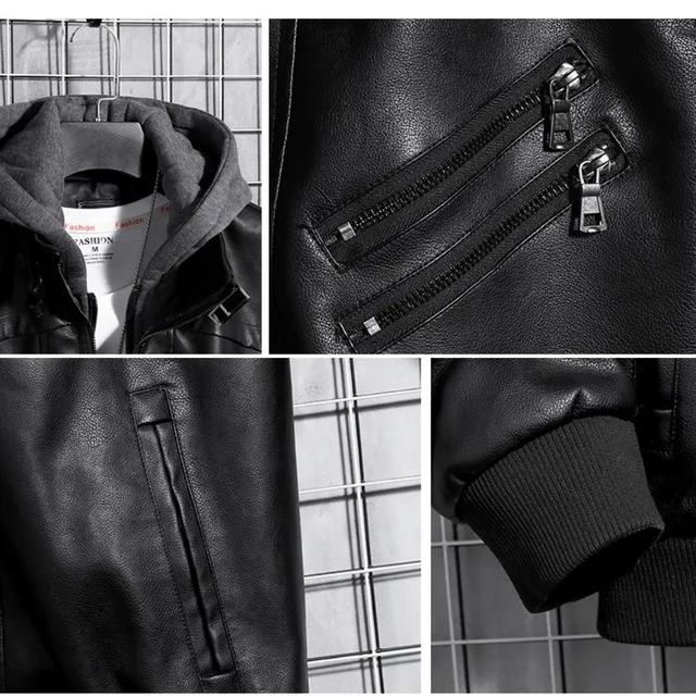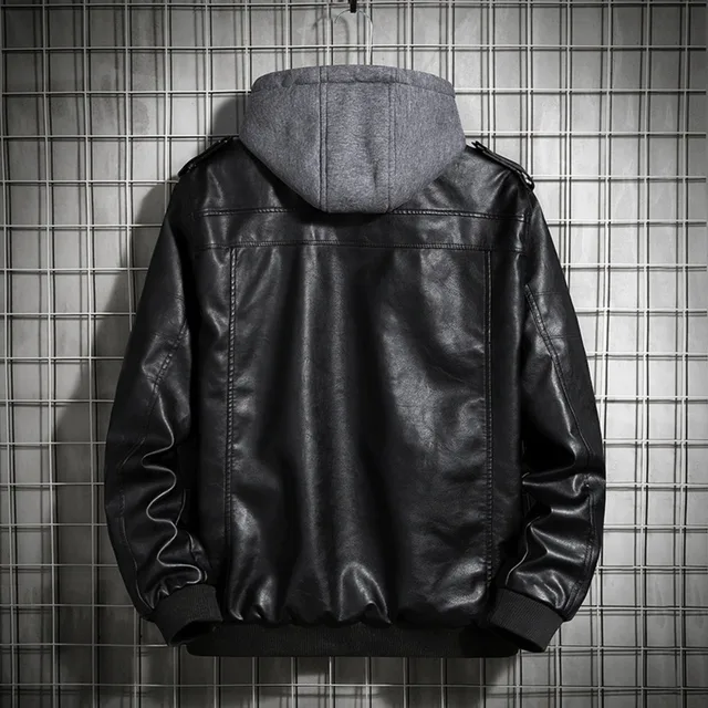 سترة جلدية بغطاء للرأس للرجال سترة شتوية من جلد البولي يوريثان سترات للمراهقين معطف جلد للدراجات النارية للرجال Harajuku