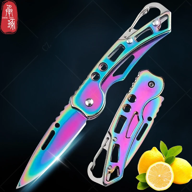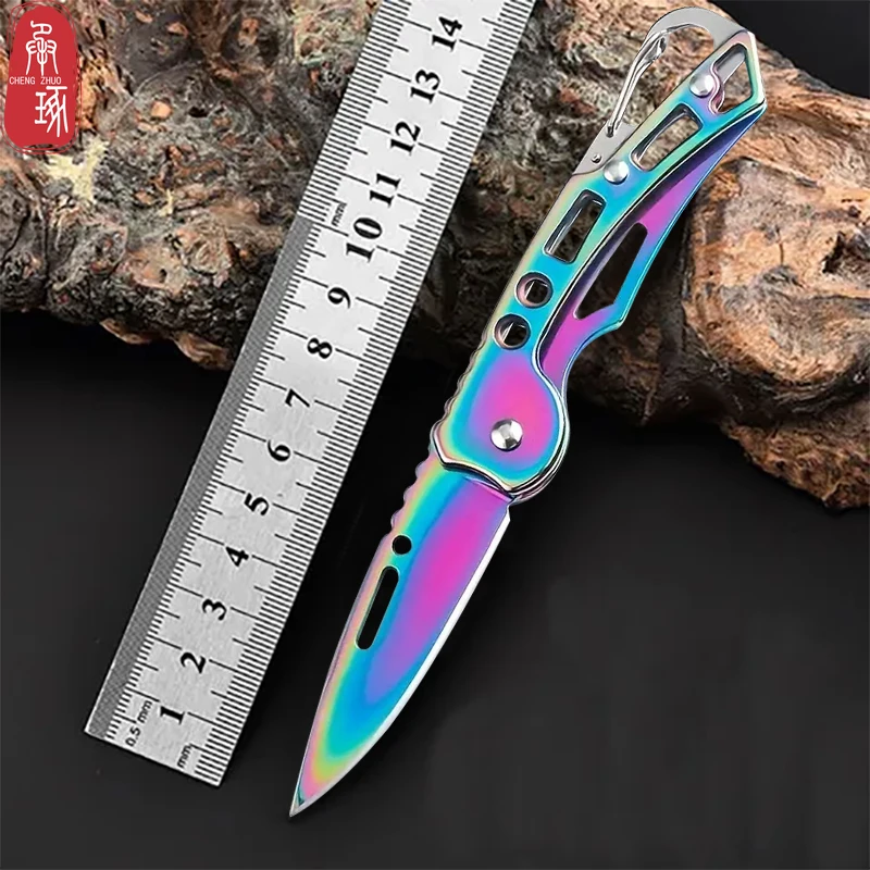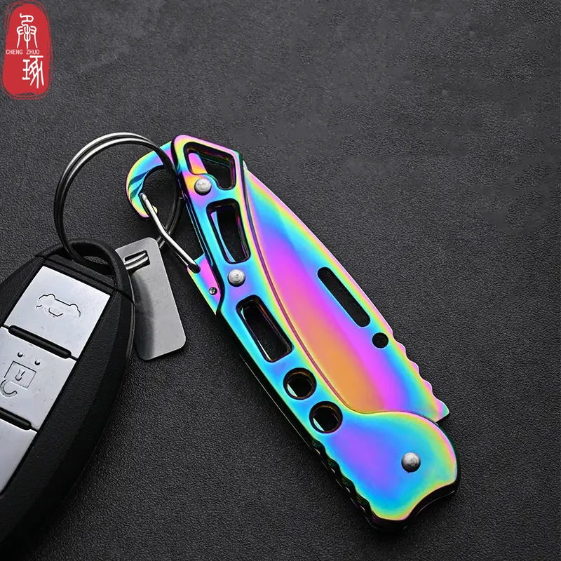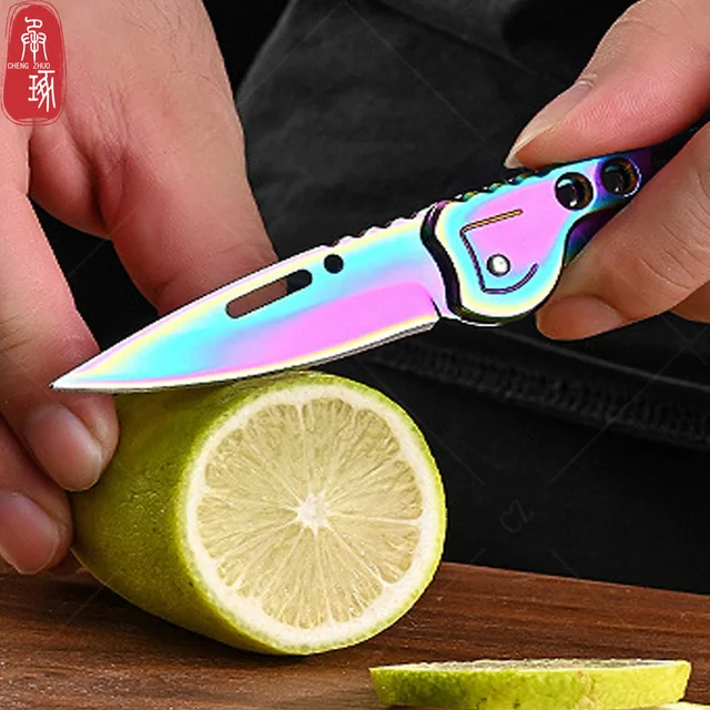 سكين فواكه قابل للطي سكين جيب من الفولاذ المقاوم للصدأ مع مقبض غير قابل للانزلاق سكّين متعدّد الاستخدامات سلسلة مفاتيح سكين محمول ملحقات المطبخ