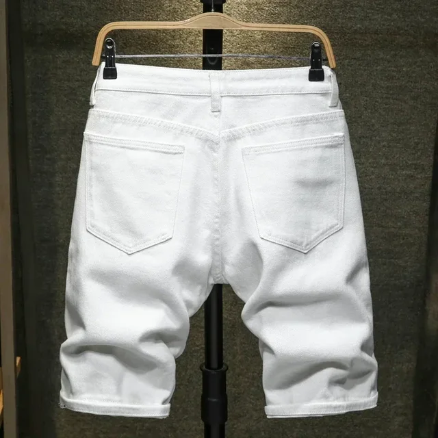 شورت جينز أبيض ممزق للرجال ، جينز بطول الركبة ، بسيط ، كاجوال ، فتحة ضيقة ، بنطال قصير ، ملابس شارع ، موضة جديدة