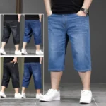 الصيف الرجال الجينز الدنيم المؤخرات العجل طول السراويل غير رسمية غسلها القطن الرباط مستقيم Capris السراويل حجم كبير 8XL
