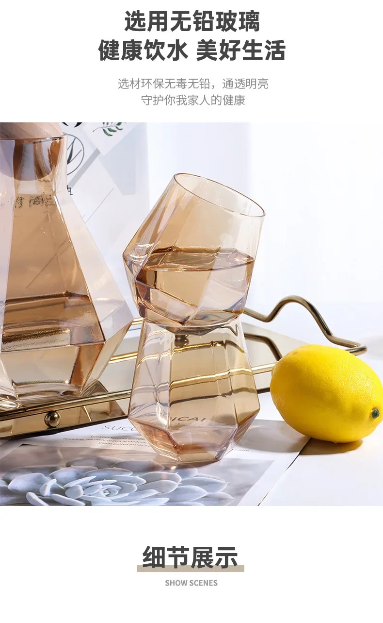 طقم أكواب غلاية ماء زجاجية كريستالية على شكل ماس ، إبريق عصير ، إبريق مشروبات ، كوب ماسي شفاف ، أدوات شرب منزلية فاخرة
