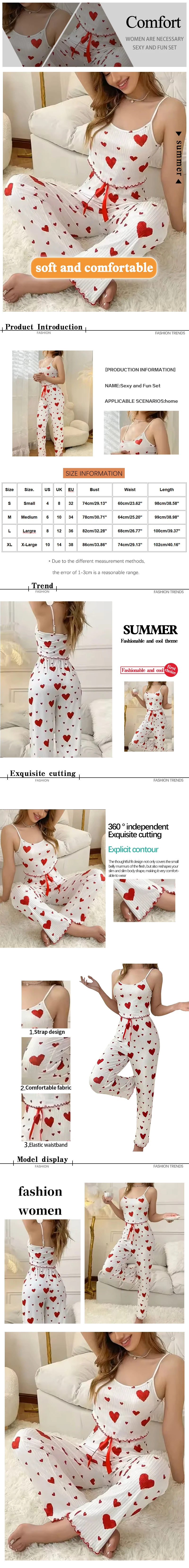 بيجامة نسائية مثيرة مطبوعة بالحب ملابس منزلية ناعمة ومريحة غير رسمية شورت بحمالات Pj مجموعة منتجات جديدة رائجة البيع