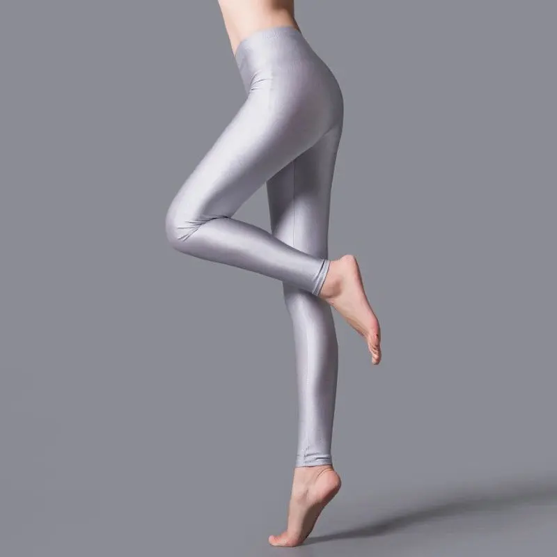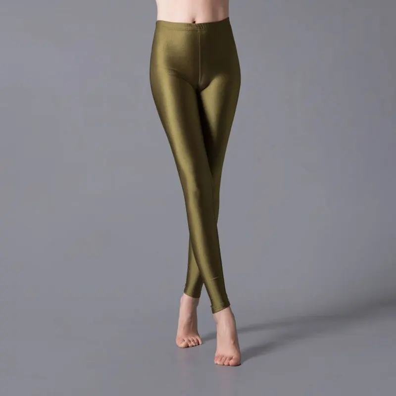 طماق نسائي لامع بلون الحلوى الفلورسنت ، بنطلون عالي المرونة ، نحيف ، غير رسمي ، ألوان متعددة ، انخفاض الشحن