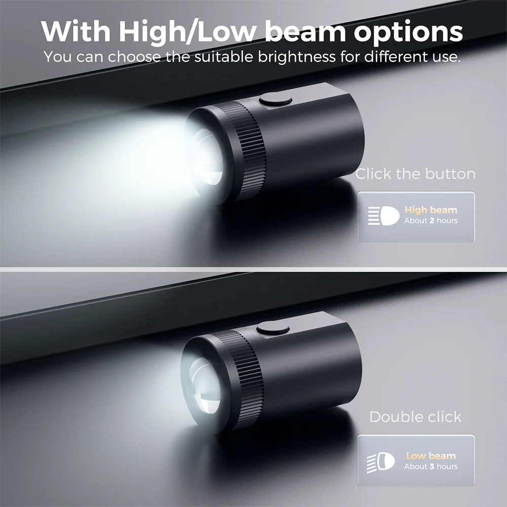 ضوء LED قوي (شعاع عالي/منخفض) وعدسة بصرية: مع خيارات الشعاع العالي/المنخفض، يمكنك اختيار السطوع المناسب لاستخدامات مختلفة.