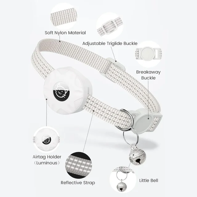 لطوق القطط Apple AirTag، طوق الحيوانات الأليفة مع حامل airtag وطوق جرس عاكس GPS هريرة للفتيات الصبي القطط جاتوس
