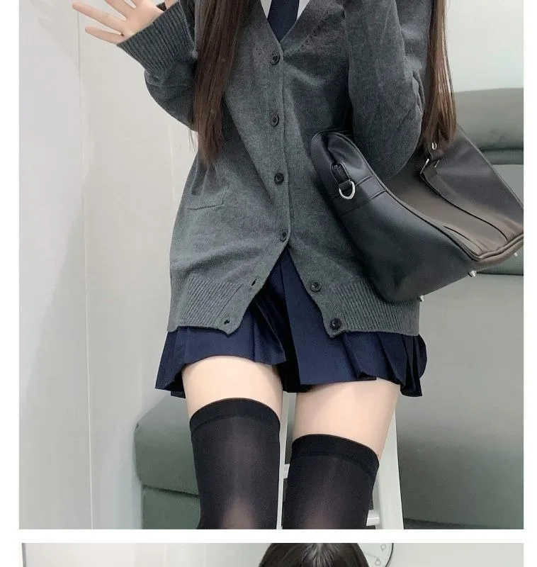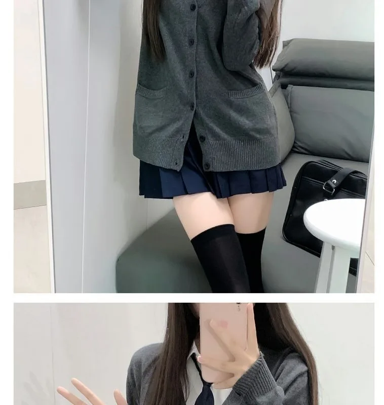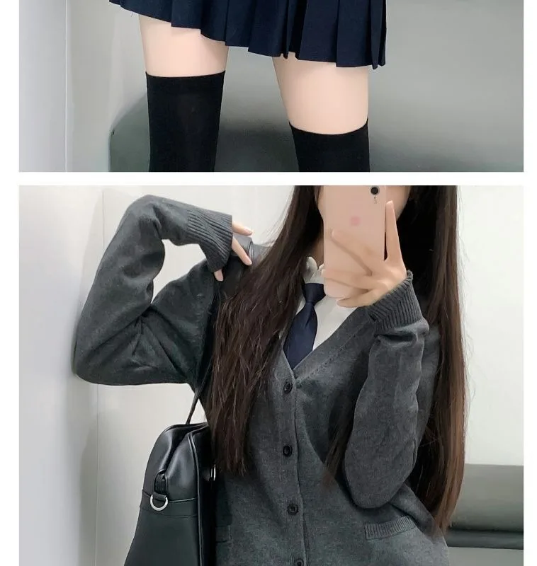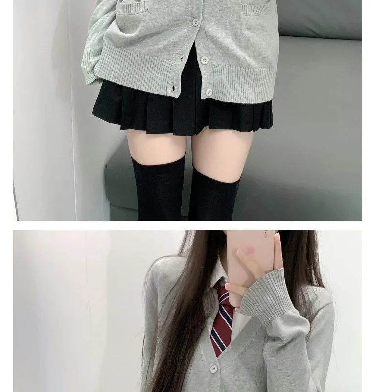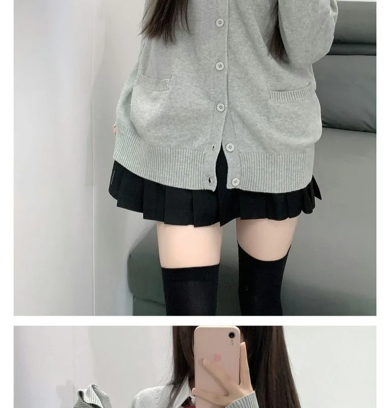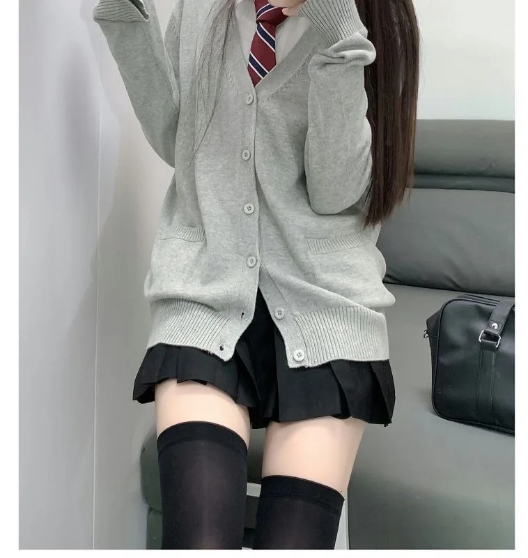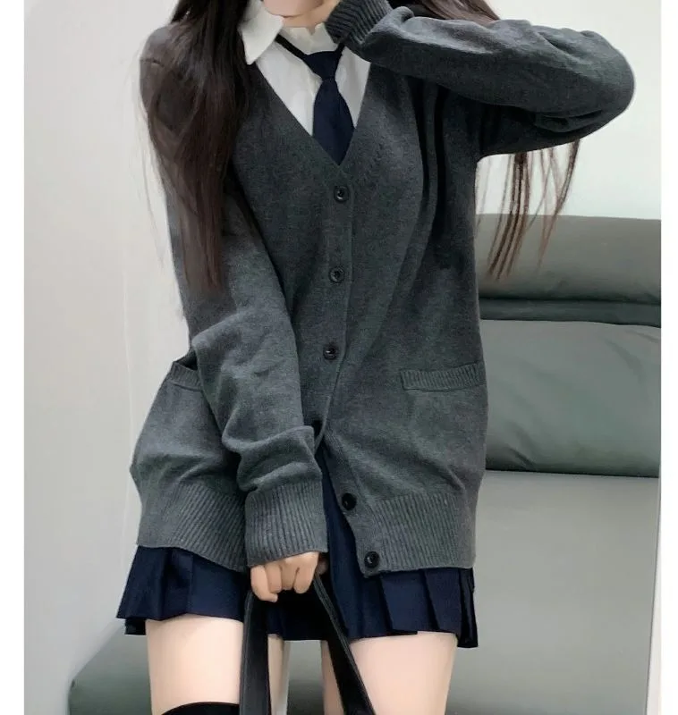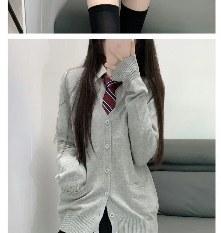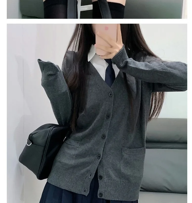 مجموعة الزي الموحد الأصلي على الطراز الجامعي ، معطف سترة ، محبوك ، رمادي ، مفتوح ، جاكيت صوف ، حلو ، ياباني ، توب