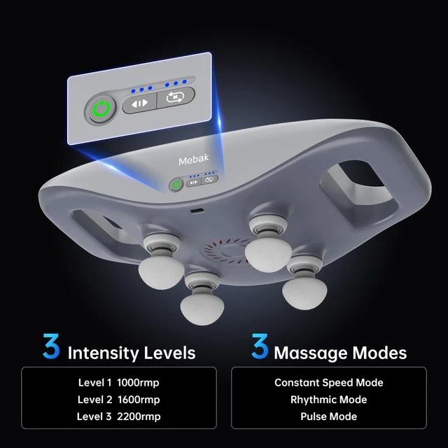 مدلك الرقبة الكهربائي ذو 4 رؤوس M1 من Mebak يمكن أن يوفر عمق قرع قوي ، ويخفف بشكل فعال من إجهاد العضلات. 3 أوضاع مع قوة ضرب مختلفة وتردد لجلب إحساس مختلف للجسم واسترخاء العضلات.