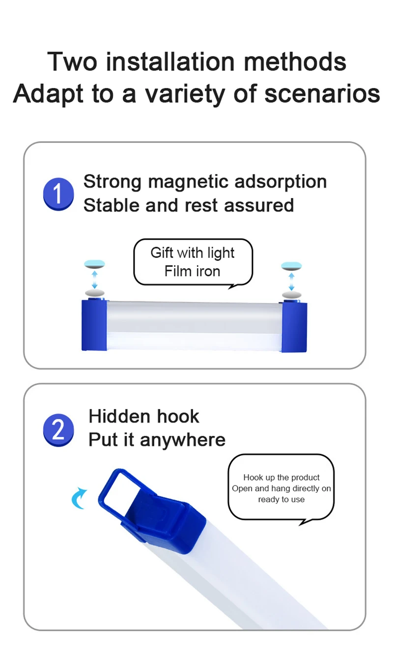 هناك طريقتان للتعليق المغناطيسي والتعليق الخطافي، والتي يمكن أن تتكيف مع المشاهد المختلفة وتلبي احتياجات الإضاءة الخاصة بك. وفي الوقت نفسه، تعتبر الإضاءة للاستخدام اليومي مثالية أيضًا.