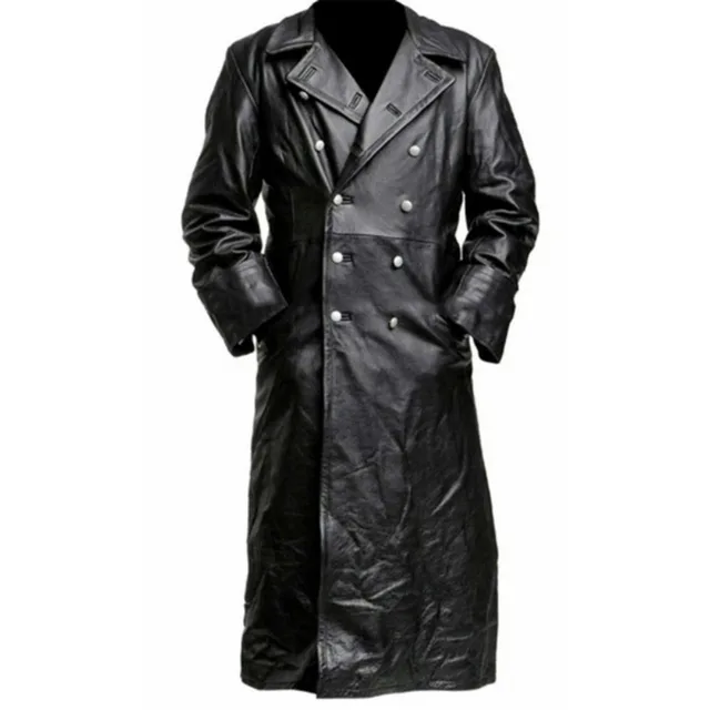 معطف رجالي ألماني كلاسيكي WW2 عسكري ضابط من الجلد الأسود