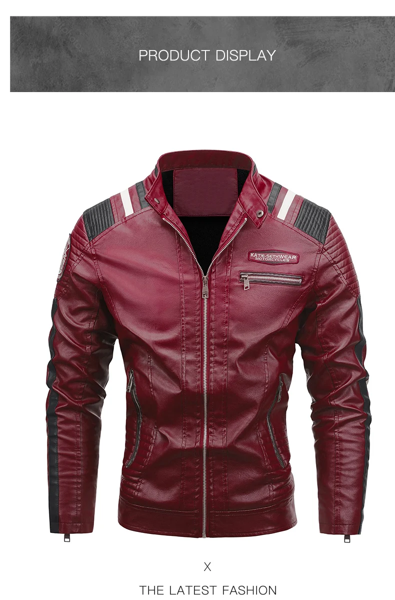 رجل يورو الولايات المتحدة بولي Leather معاطف جلدية في سن المراهقة الوقوف طوق فاسق الذكور دراجة نارية سترة جلدية فو الجلود سستة الخريف معطف وسيم