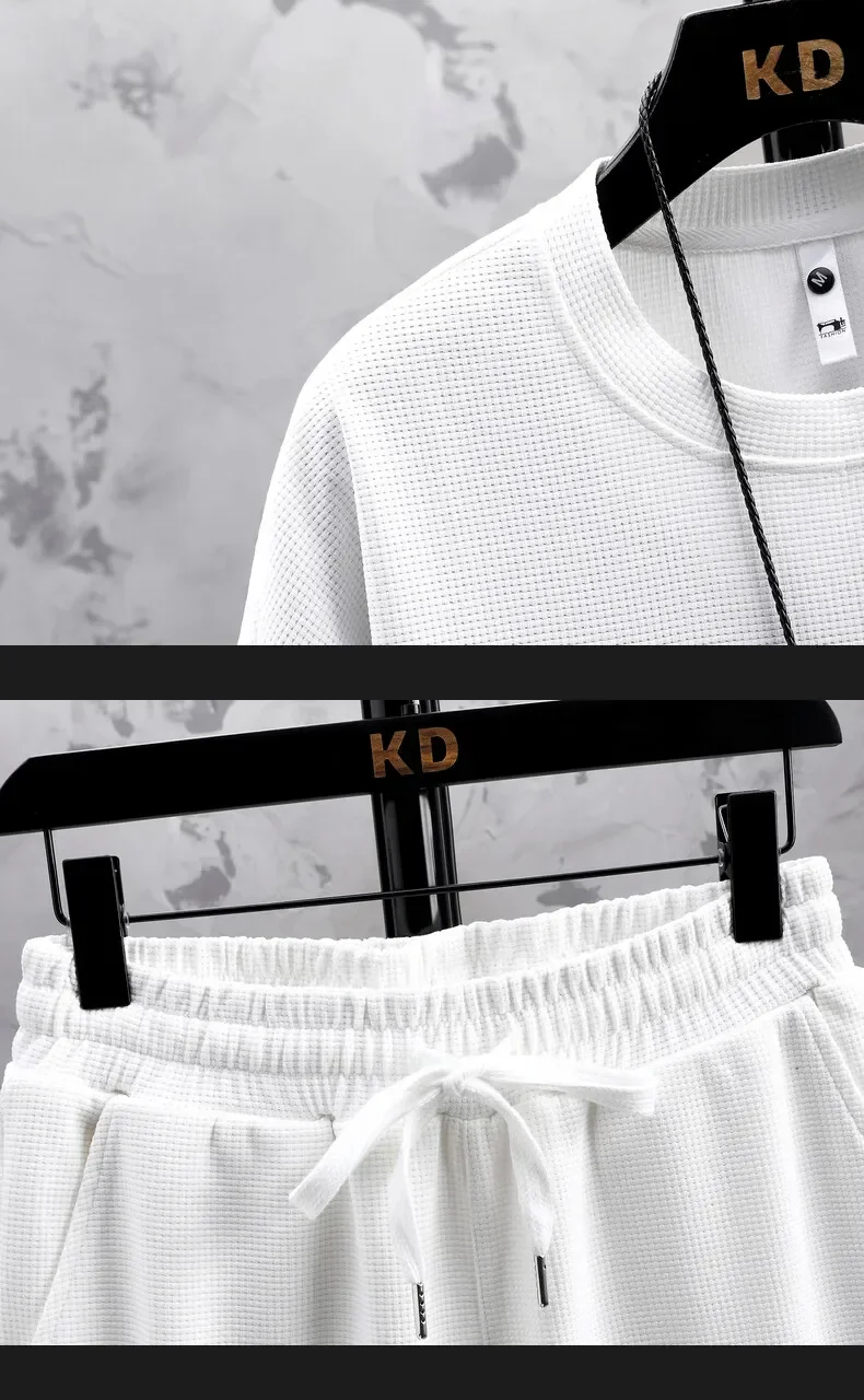 بدلة رياضية من قماش الكتان للرجال وسراويل قصيرة ، أطقم بدلات رياضية جيدة التهوية ، موضة جديدة للصيف ، طقم من قطعتين ،