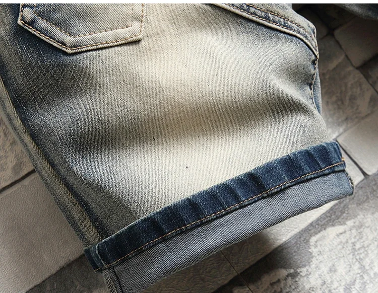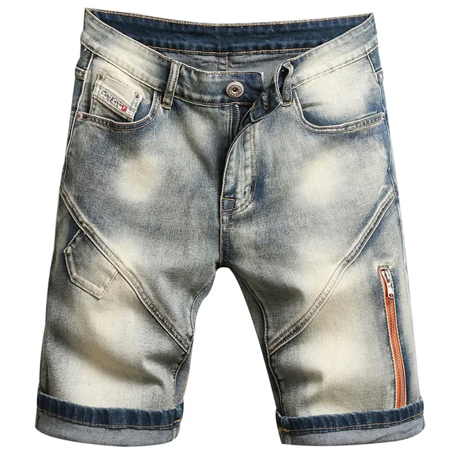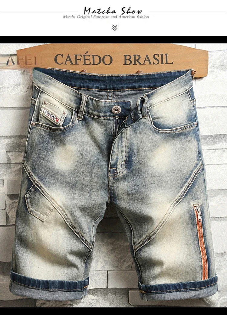 2025 جديد المرقعة خمر الدنيم السراويل القديمة الرجال الصيف شارع العليا موضة العلامة التجارية خمس نقاط السراويل المتوسطة دراجة نارية سستة