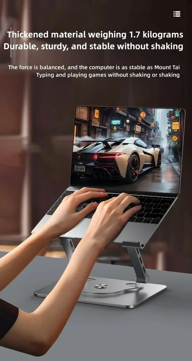 【 360° الدوران 】حامل الكمبيوتر المحمول لديه 360° قاعدة اتصال مزدوجة المحور قابلة للدوران، مما يسمح لك بتدوير الكمبيوتر المحمول إلى أي زاوية.