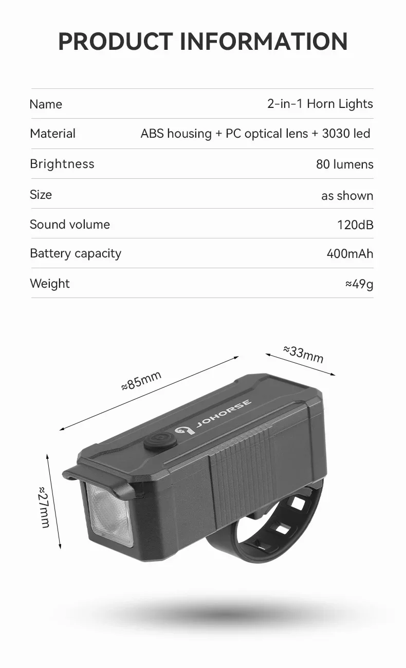 اسم المنتج: مصباح دراجة بقرن مزدوج الوظيفة